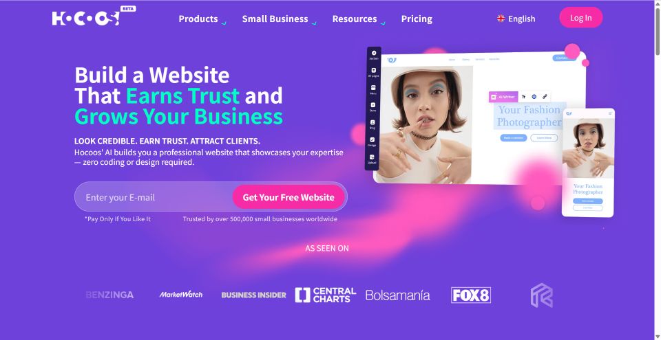 👉 Use Hocoos AI if: You want your website to feel unique, brand-forward, and visually sharp—without having to be a designer.