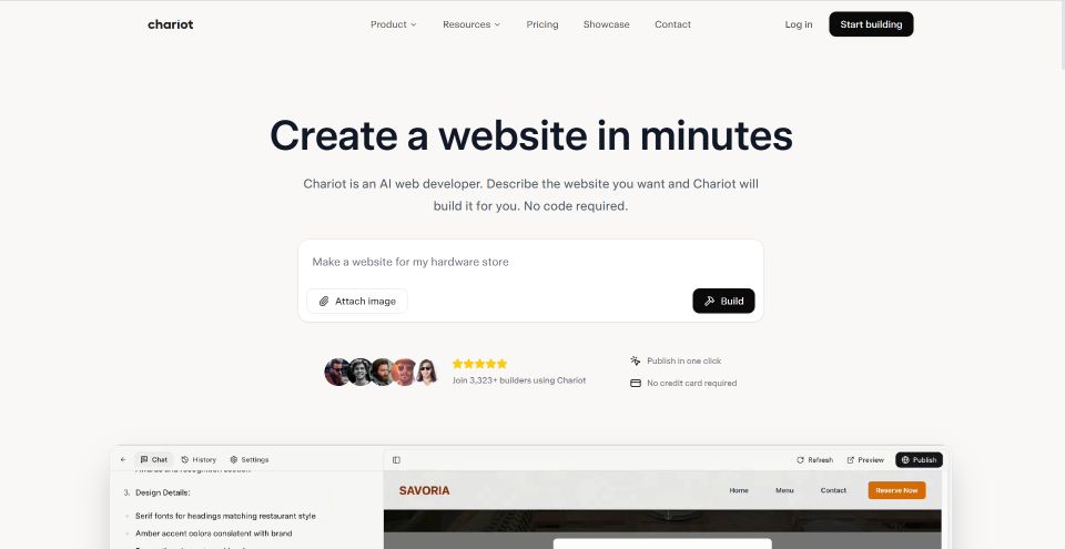 👉 Use Chariot AI if: You want a helpful, intuitive AI website builder that guides your decisions while keeping things fast and simple.
